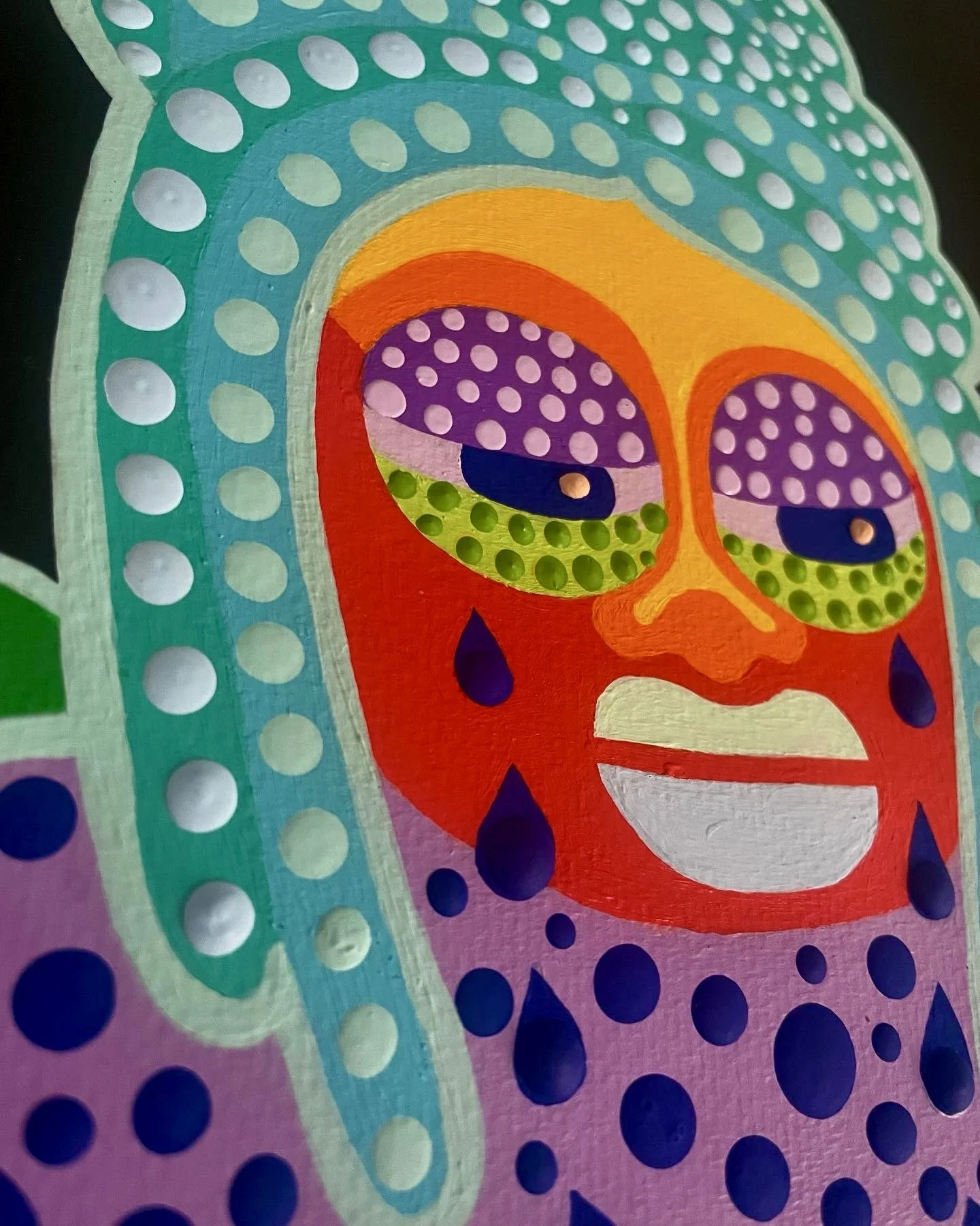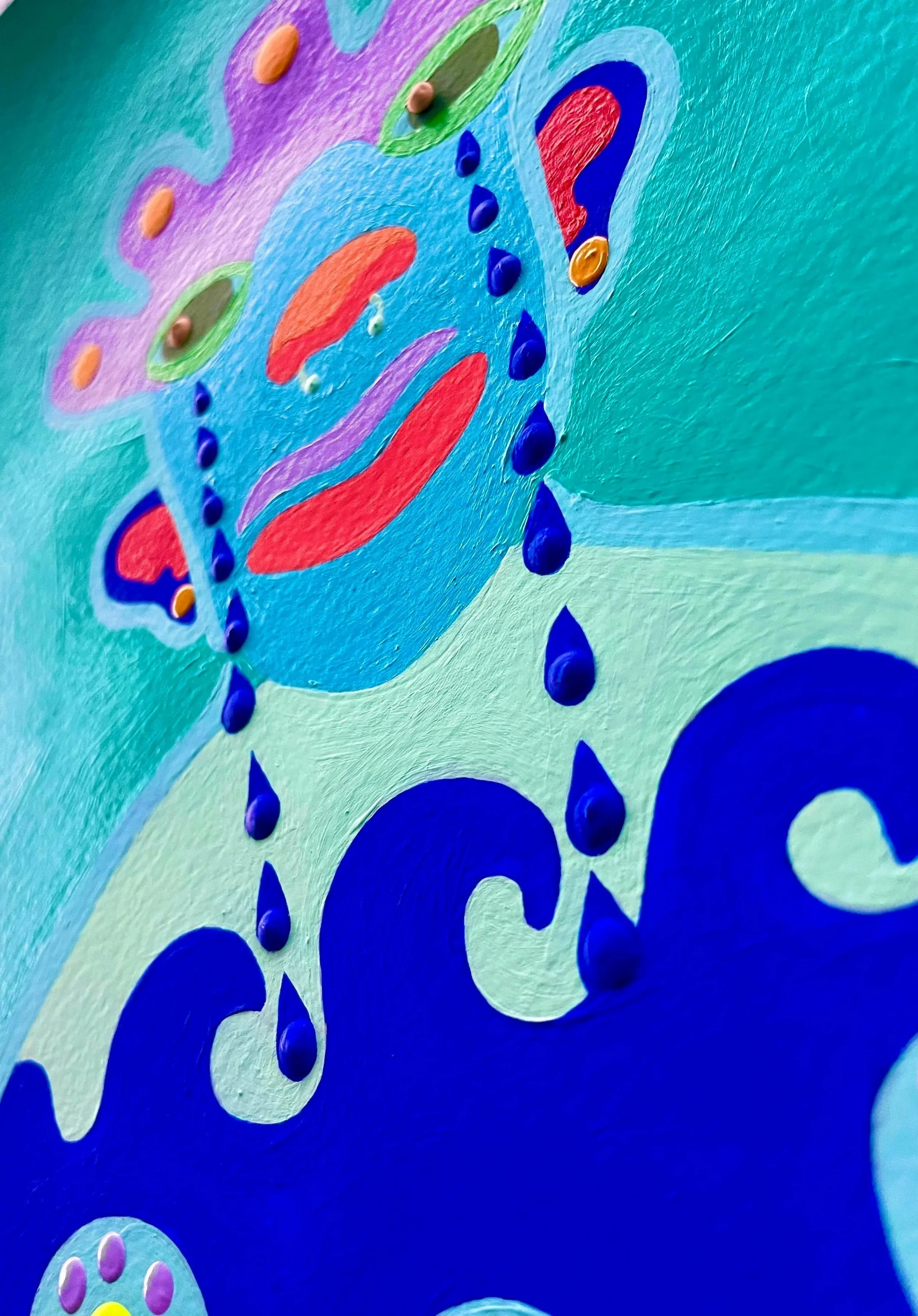 Sad Girls Series encourages sitting with hard feelings to grow. Sitting with hard feelings is necessary for growth. Avoiding pain leads to repeated mistakes and hurtful patterns. Crying also has tons of physical benefits, so go ahead and cry, baby. Acrylic paint on 11x15-inch cold-press paper. Sensory art, designed and textured for touch, offering a soothing tactile experience.